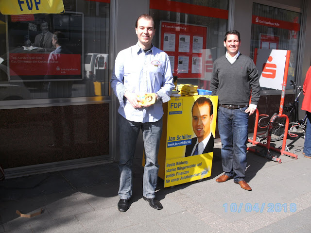 Mit gleich zwei Infoständen hat die FDP Kerpen den Straßenwahlkampf zur Landtagswahl eröffnet. In Horrem waren Tobias Schmelter und Jan Schiller, der Wahlkreiskandidat (siehe Bild) fleißig, Axel Fell ergänzte zum Trio. In Sindorf standen Christian Pohlmann und Rainer Wetelkam, auch dort setzte sich der Wahlkreiskandidat Jan Schiller ein. Insgesamt zeigt sich, dass die FDP Kerpen wieder einmal sehr kampagnenfähig ist.